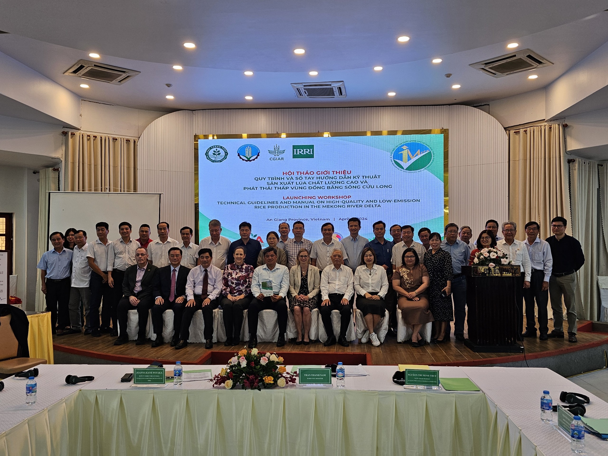 Ngày 04 tháng 04 năm 2024, tại thành phố Long Xuyên, tỉnh An Giang, Cục Trồng trọt phối hợp với Viện Nghiên cứu Lúa gạo Quốc tế (IRRI) và Sở Nông nghiệp và Phát triển Nông thôn tỉnh An Giang tổ chức Hội thảo giới thiệu Quy trình và Sổ tay hướng dẫn kỹ thuật sản xuất lúa chất lượng cao và phát thải thấp vùng Đồng bằng sông Cửu Long.