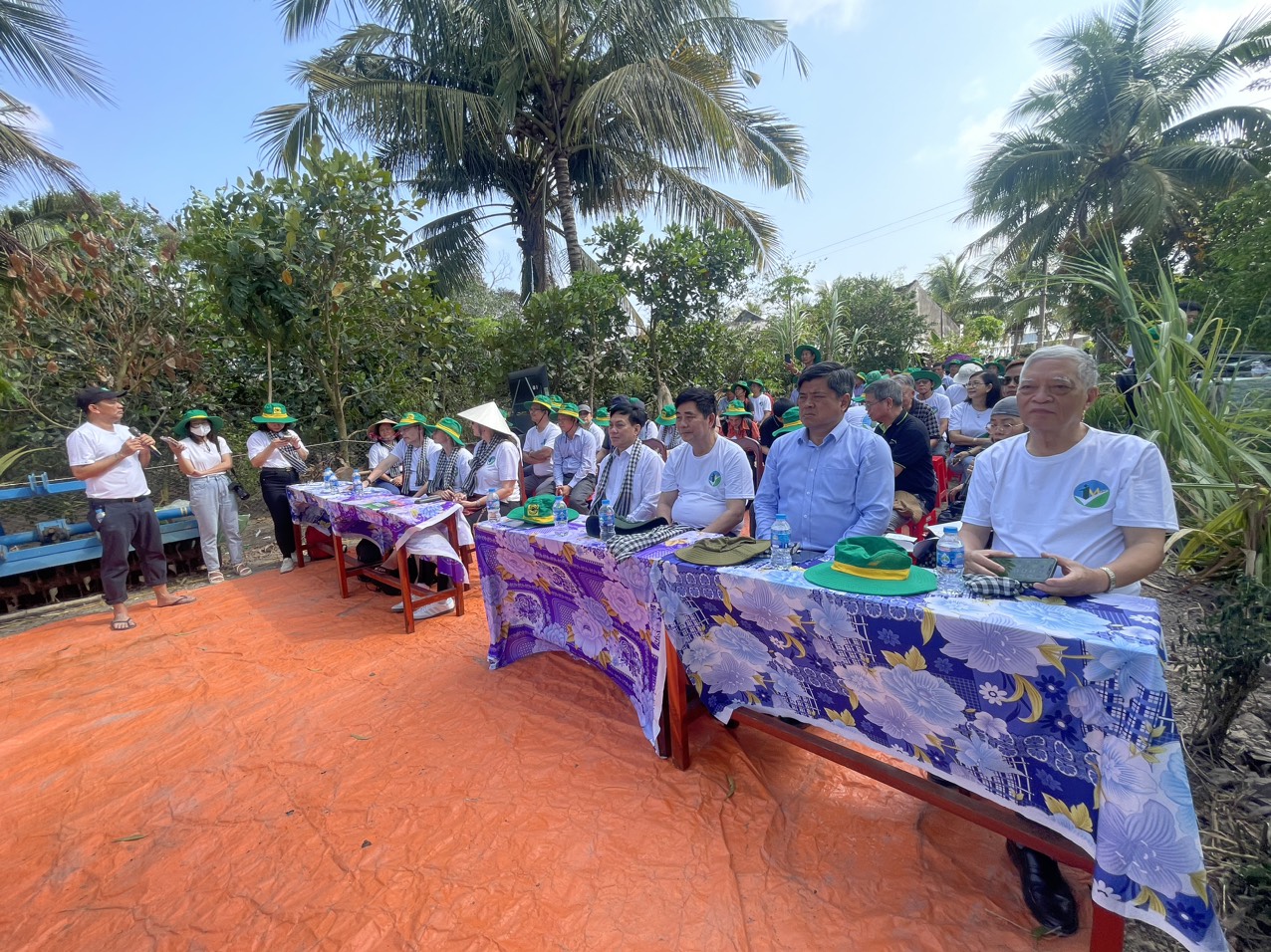 Thứ trưởng Bộ NN&PTNT Trần Thanh Nam (thứ 2 từ phải sang) cùng Đại diện các bên tham gia trong và ngoài nước tham dự Lễ khởi động Cánh đồng một triệu ha lúa chất lượng cao, phát thải thấp tại hợp tác xã Thuận Tiến, xã Thạnh An, huyện Vĩnh Thạnh, Tp. Cần Thơ vào ngày 5/4/2024.