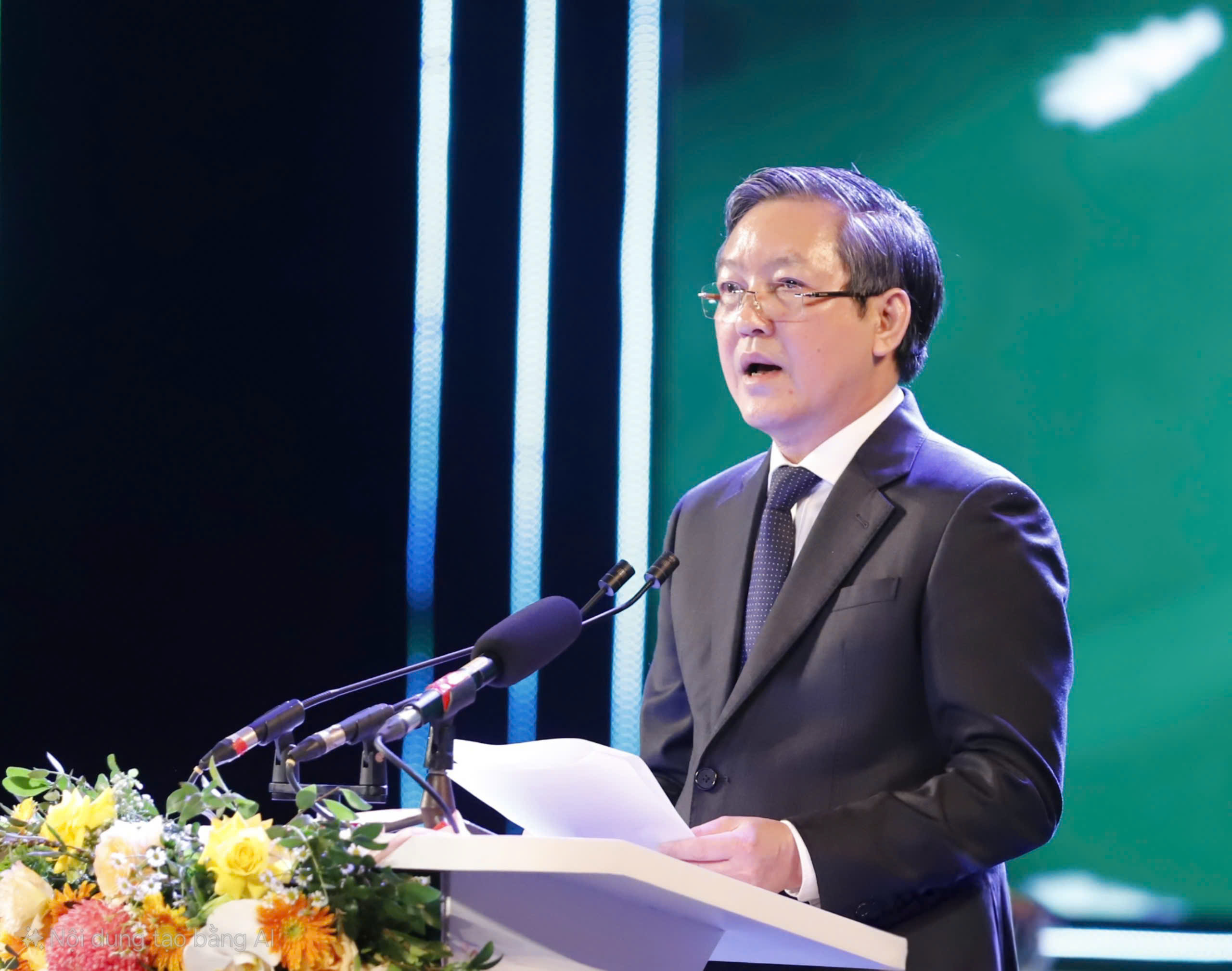 Đồng chí Trần Thanh Mẫn, Ủy viên Bộ chính trị, Chủ tịch Quốc hội nước Cộng hòa xã hội chủ nghĩa Việt Nam phát biểu vinh danh nông dân xuất sắc năm 2024 tại buổi lễ.