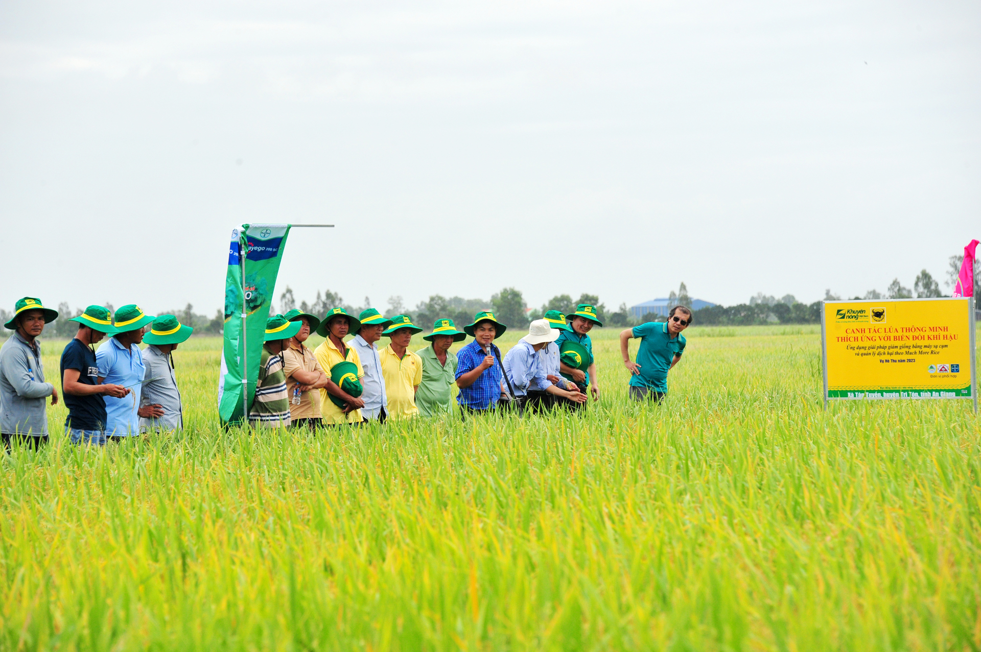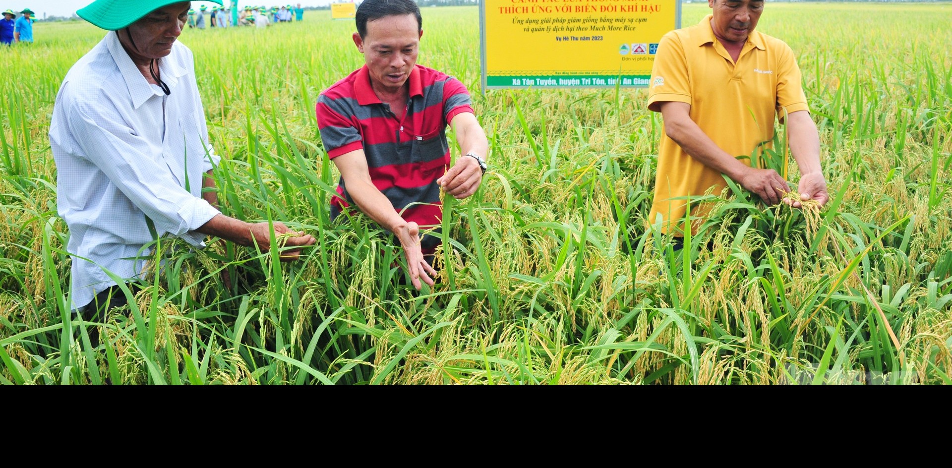 Vụ hè thu 2023, Công ty cổ phần Phân bón Bình Điền, Công ty Bayer Việt Nam, Công ty Sài Gòn Kim Hồng và Trung tâm Khuyến nông 3 tỉnh An Giang, Kiên Giang, Sóc Trăng đã thực hiện chương trình trình diễn mô hình canh tác lúa thông minh thích ứng với biến đổi khí hậu, ứng dụng giải pháp giảm giống bằng máy sạ cụm và quản lý dịch hại theo quy trình Much More rice nhằm giúp nông dân có giải pháp thích ứng với những điều kiện khó khăn trong canh tác lúa hiện nay, đồng thời tiếp cận với các tiến bộ kỹ thuật mới trong canh tác.