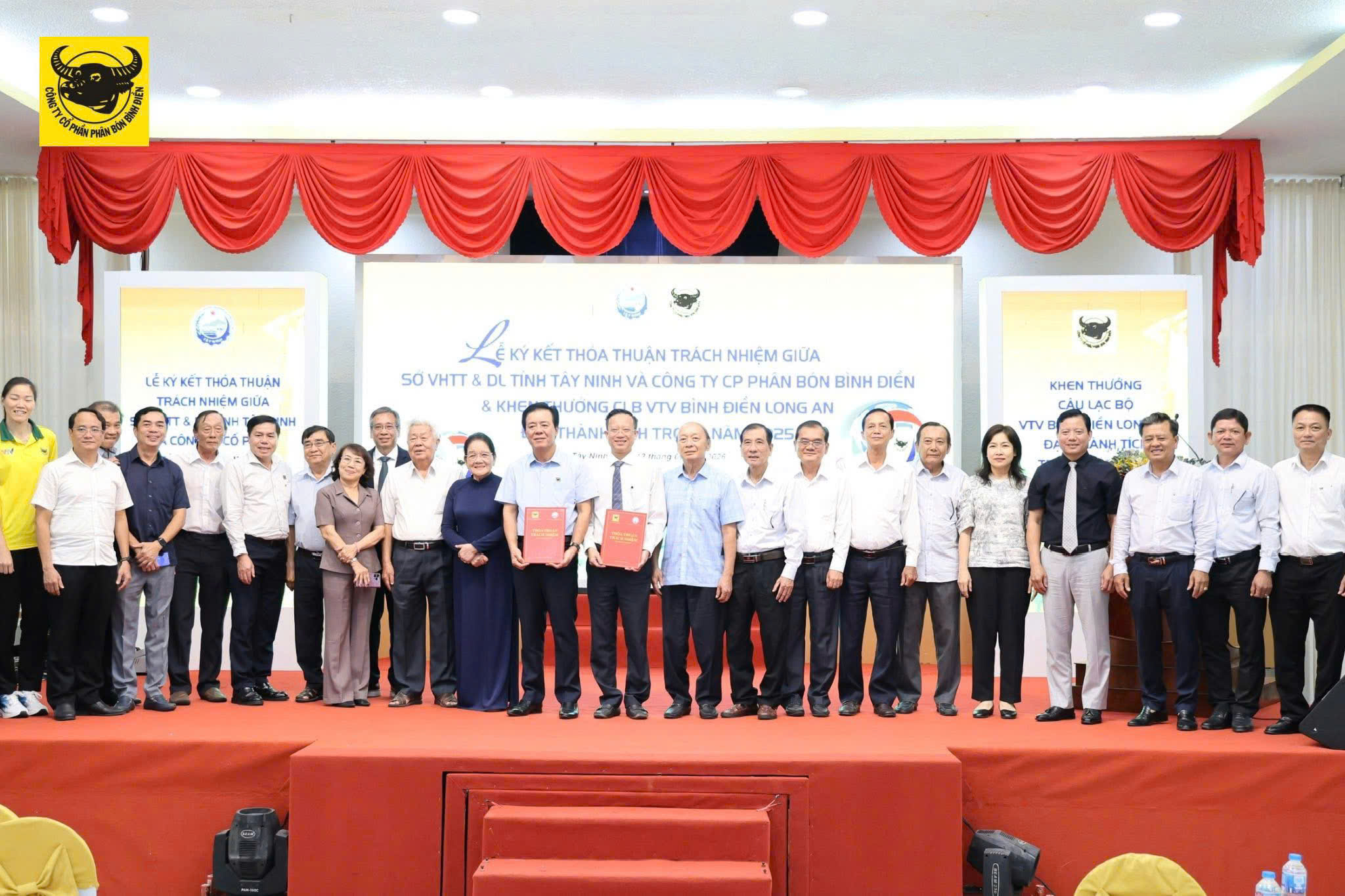 Chiều 13/01, tại Trung tâm Phục vụ Hội nghị Long An (tỉnh Tây Ninh), đã diễn ra Lễ ký kết thỏa thuận trách nhiệm giữa Sở VHTT & DL tỉnh Tây Ninh và Công ty Cổ phần Phân bón Bình Điền. Trong khuôn khổ chương trình, CLB VTV Bình Điền Long An cũng được khen thưởng nhằm ghi nhận những thành tích nổi bật đạt được trong năm 2025.