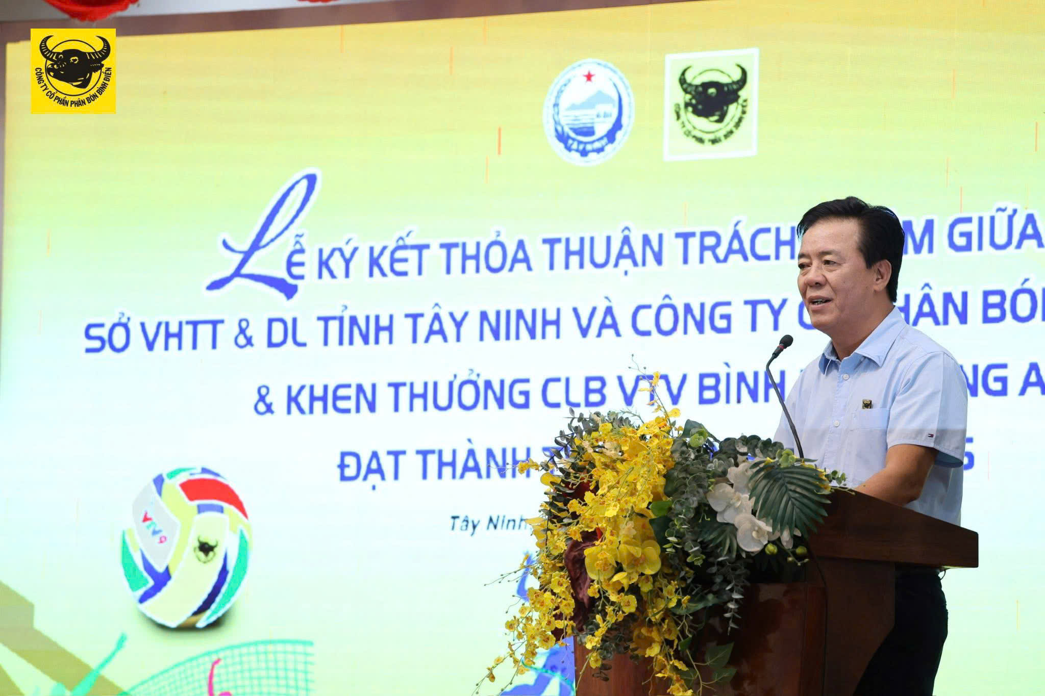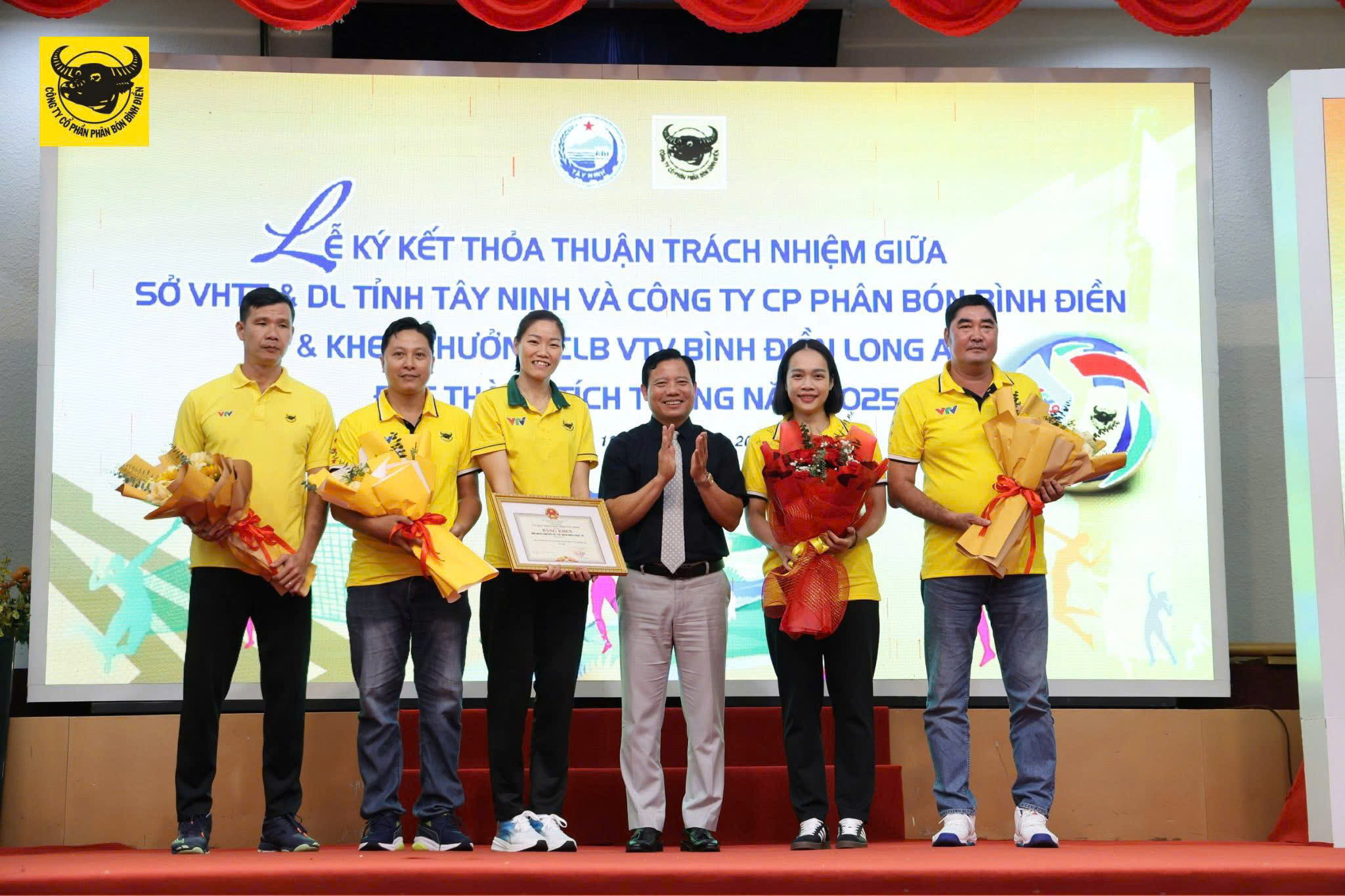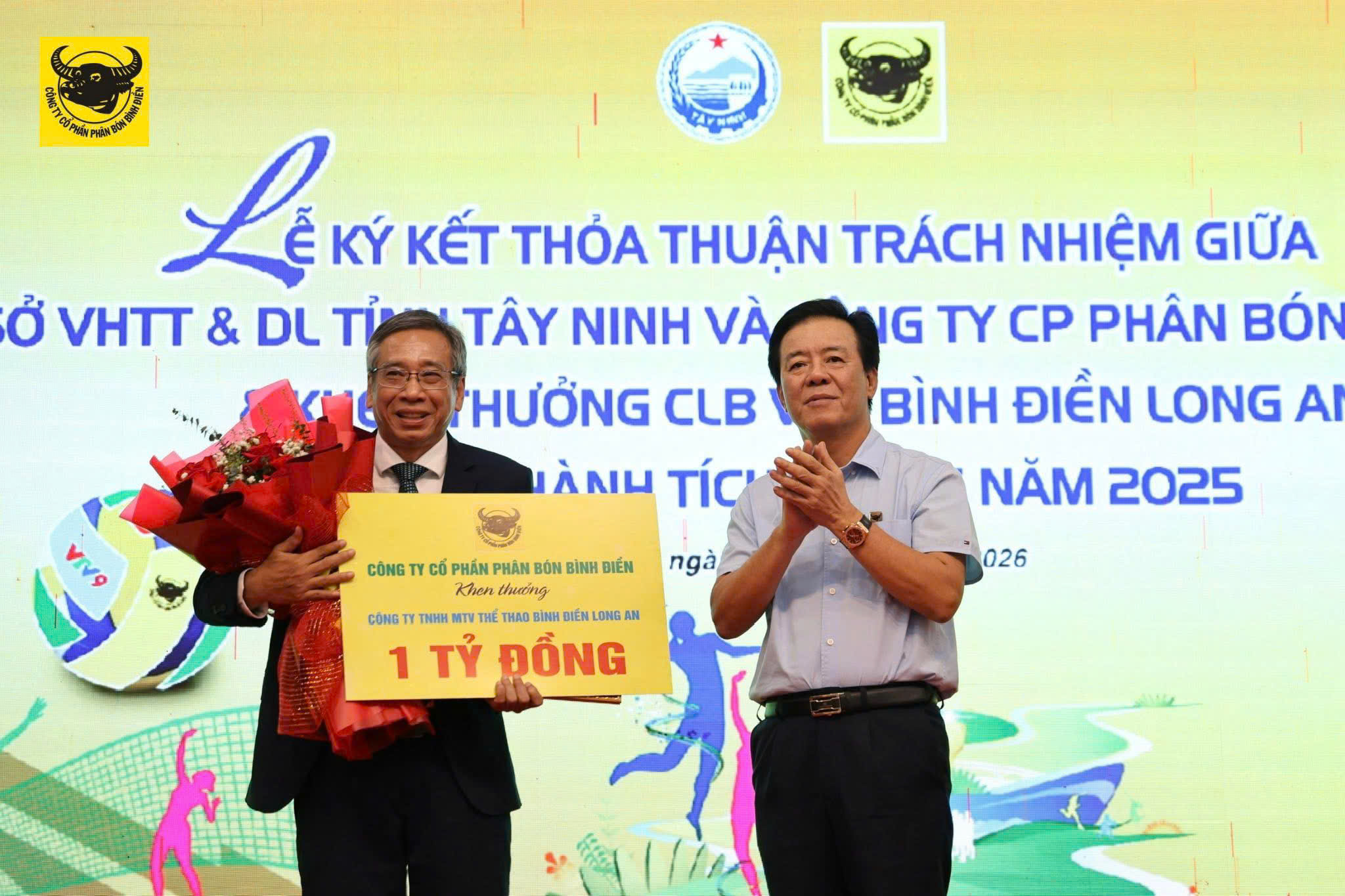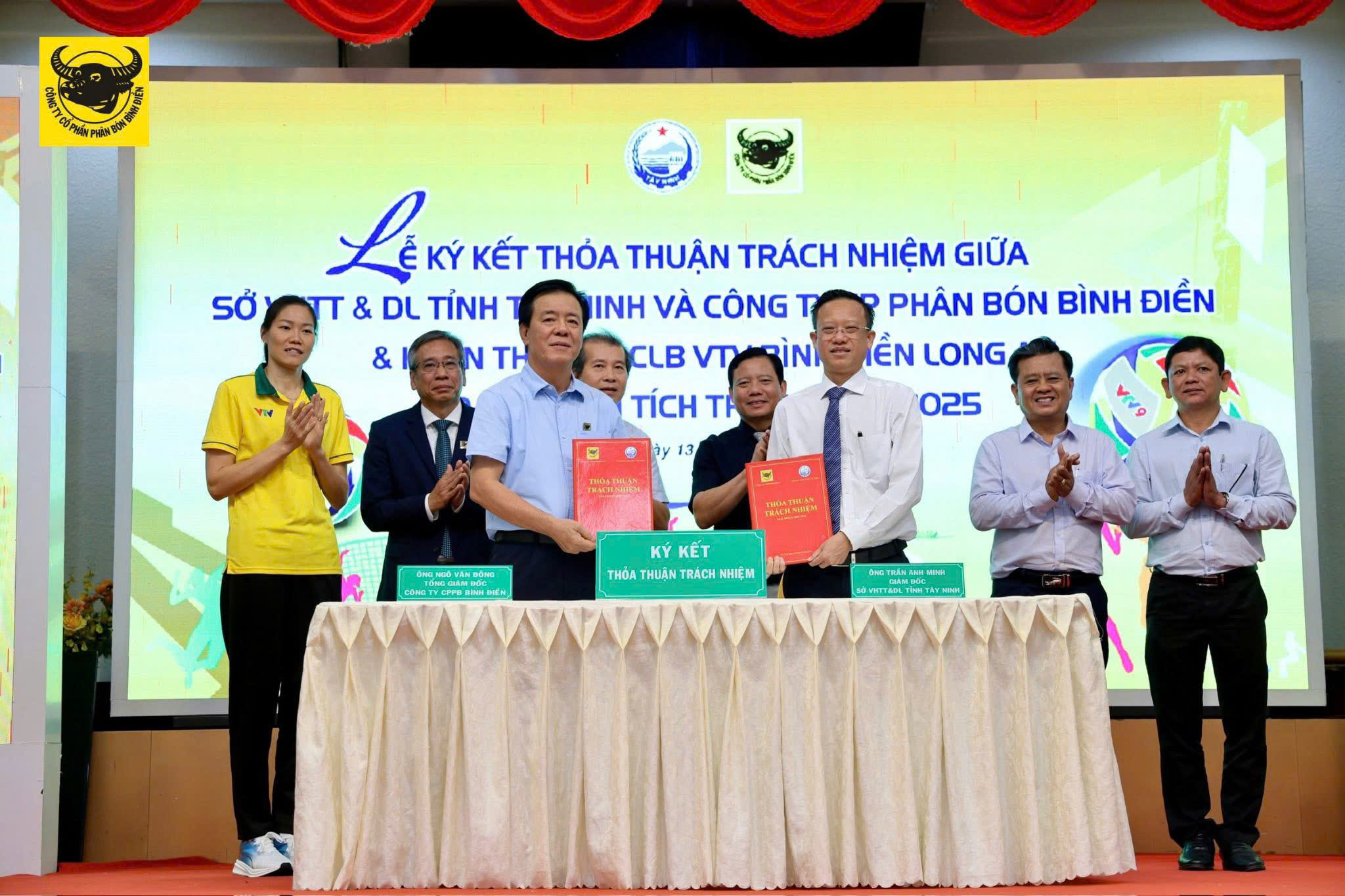 Với tinh thần định hướng chiến lược đưa câu lạc bộ VTV Bình Điền Long An phát triển theo hướng chuyên nghiệp, Sở VHTT & DL tỉnh Tây Ninh cùng Công ty Phân bón Bình Điền thống nhất tiến hành ký kết bản thỏa thuận trách nhiệm.
