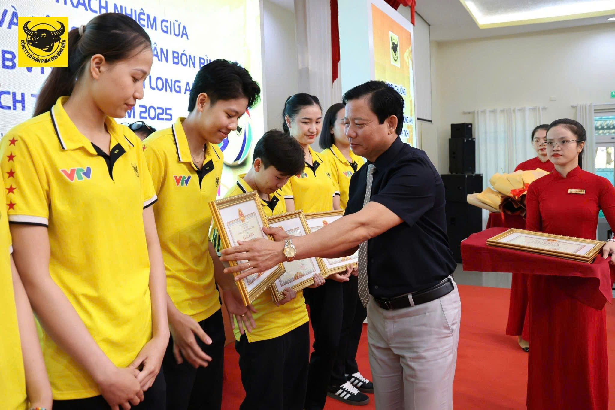 Song song đó, Công ty Cổ phần Phân bón Bình Điền cũng tổ chức khen thưởng các cá nhân tiêu biểu của đội bóng chuyền nữ VTV Bình Điền Long An, ghi nhận tinh thần thi đấu, sự nỗ lực và những đóng góp bền bỉ trong suốt mùa giải 2025.