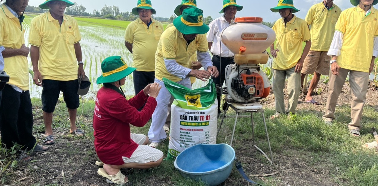 Đầu vụ cần làm đất kỹ, bón lót phân Đầu Trâu Mặn-Phèn, với lượng bón từ 100-150kg/ha, để hóa giải độc chất trong đất, tạo điều kiện thuận lợi để rễ lúa phát triển khỏe ngay từ đầu.