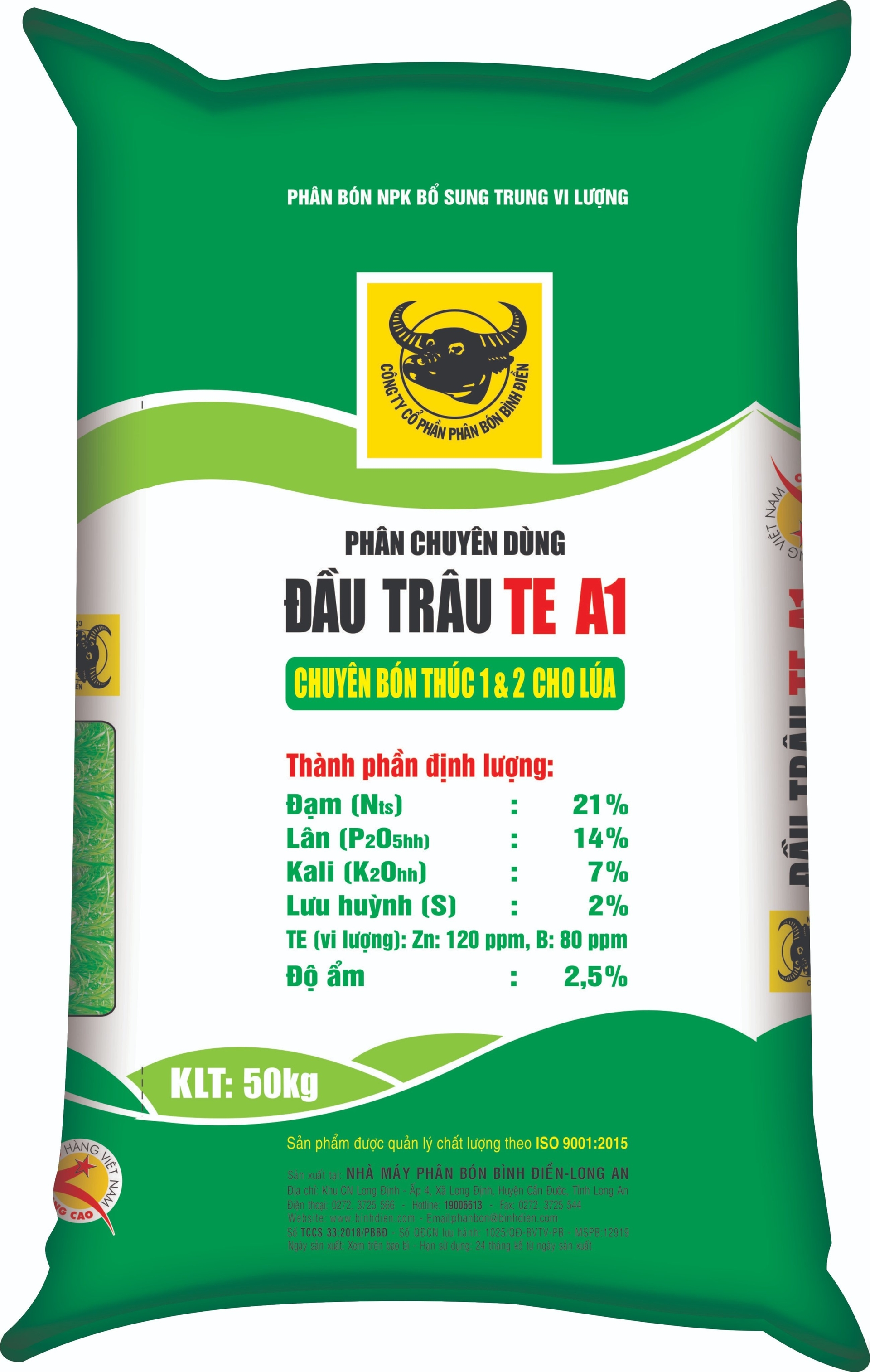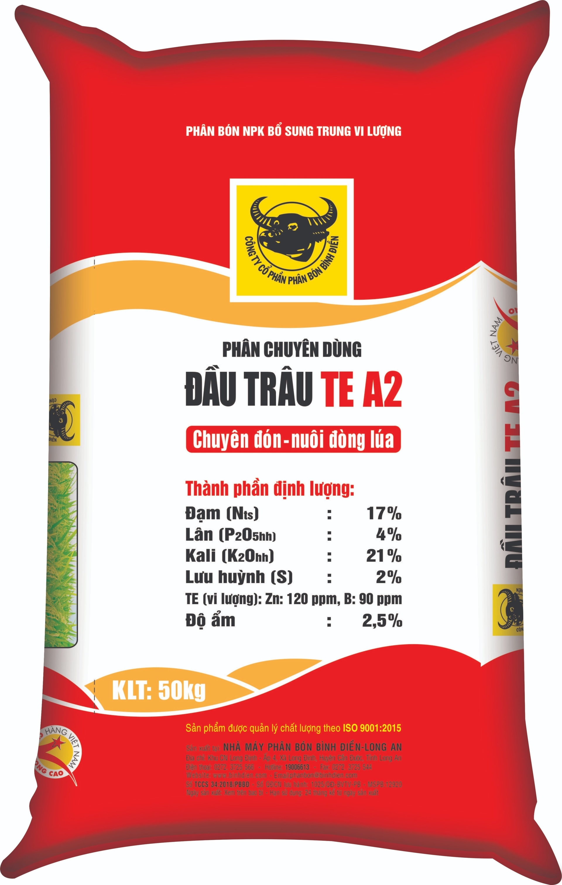 - Giai đoạn bón phân đón đòng, từ 38-42 ngày sau sạ, bón thúc lần 3: Bón phân Đầu Trâu TE A2, lượng bón 100-150kg/ha. Các sản phẩm phân bón nói trên do Công ty CP Phân bón Bình Điền sản xuất.
