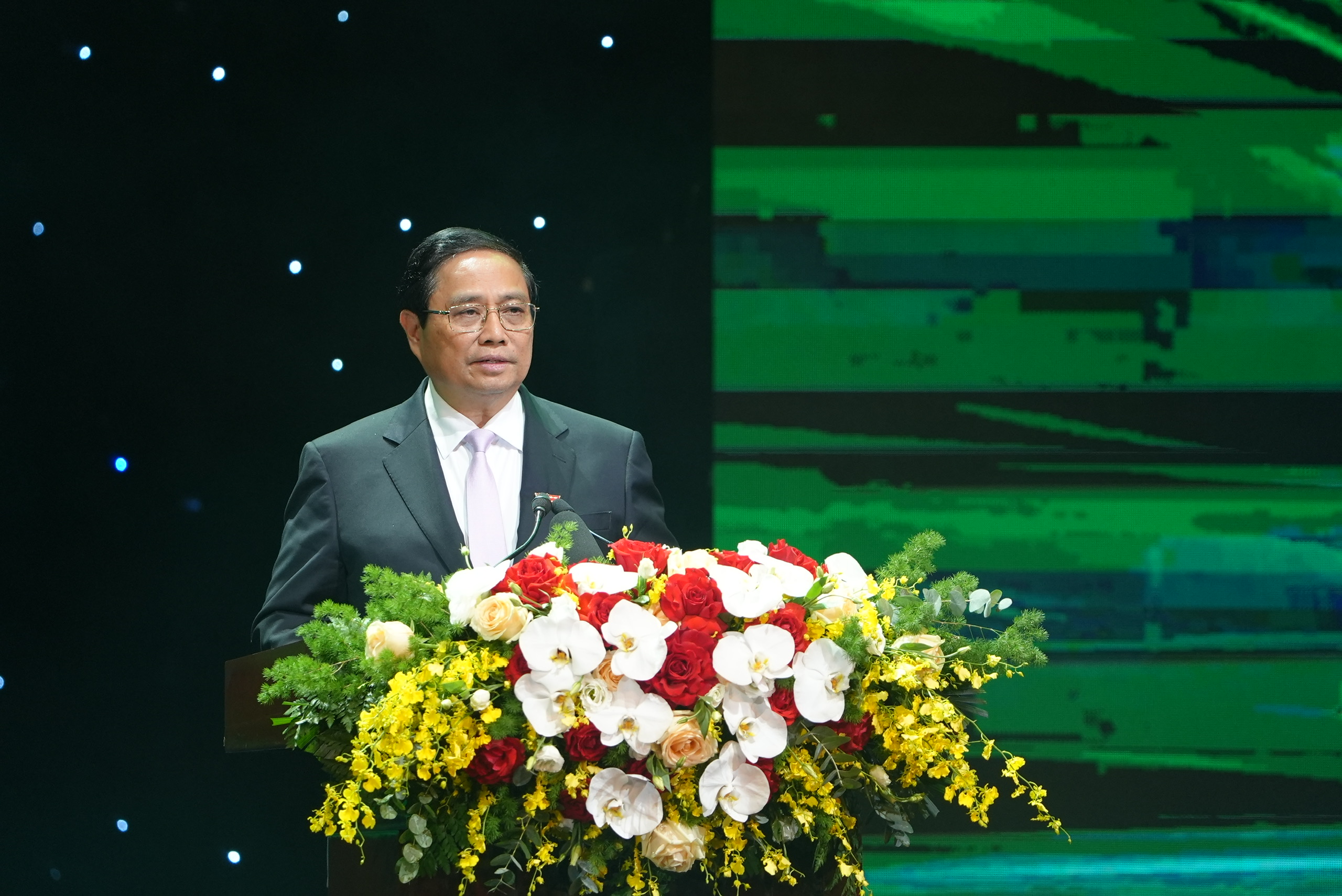 Phát biểu chỉ đạo tại buổi Lễ, Thủ tướng Chính phủ Phạm Minh Chính vui mừng và đánh giá cao những đóng góp quan trọng của các doanh nghiệp có sản phẩm đạt Thương hiệu quốc gia Việt Nam. Thủ tướng nêu rõ, xây dựng và phát triển Thương hiệu quốc gia Việt Nam là nhiệm vụ có ý nghĩa đặc biệt quan trọng, mang tính chiến lược, là sứ mệnh của tất cả chúng ta với sự kiên trì, nỗ lực và sáng tạo không ngừng nghỉ, trong đó việc xây dựng thương hiệu sản phẩm quốc gia là một trong những nội dung cốt lõi. Các doanh nghiệp đạt Thương hiệu quốc gia nói riêng và cộng đồng doanh nghiệp, doanh nhân Việt Nam nói chung cần tiếp tục phát huy những giá trị cốt lõi và cam kết về phát triển bền vững trong hành trình tiến vào kỷ nguyên xanh của mình.